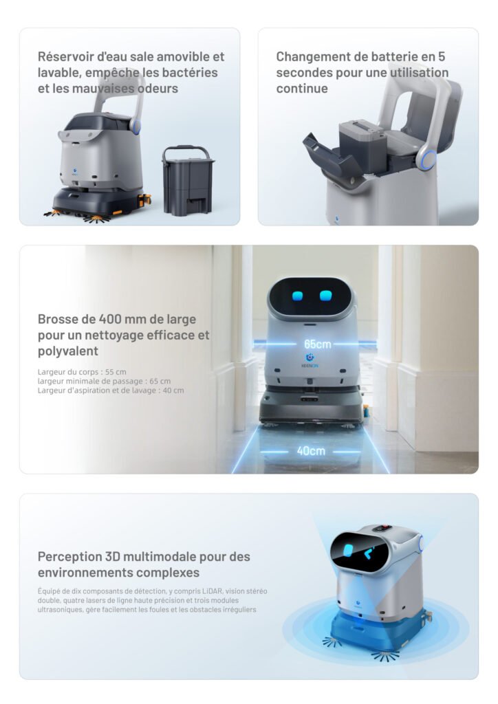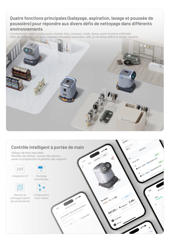 Robot de Nettoyage de Sol Professionnel 4-en-1 pour Petits et Moyens Espaces